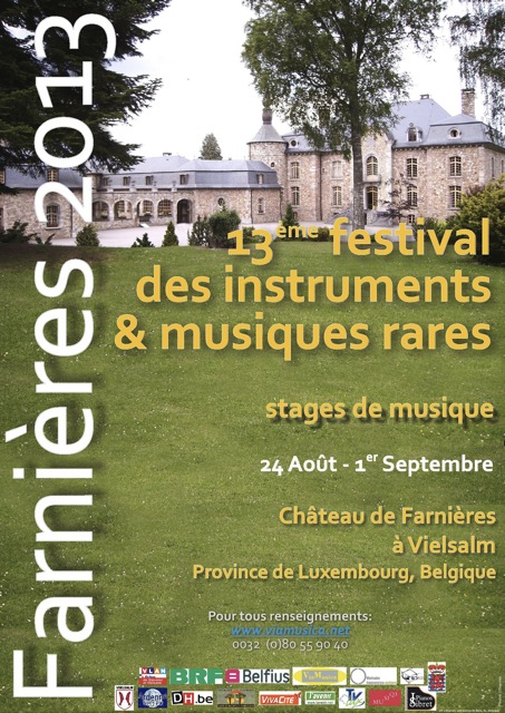 Durante los días 24 de agosto al 1 de septiembre de 2013, tiene lugar la XXIX edición del Stage de musique Farnières en el Chateau de Farnières en Vielsalm (Province du Luxenbourg), Bélgica. A lo largo de estas fechas, se desarrollan numerosas actividades musicales, conciertos de los profesores e invitados, etc, además de las clases diarias, ensayos y la práctica de la música de cámara. Los conciertos abordan diferentes temáticas, desde el jazz, hasta la música contemporánea, pasando por la música española o sudamericana.