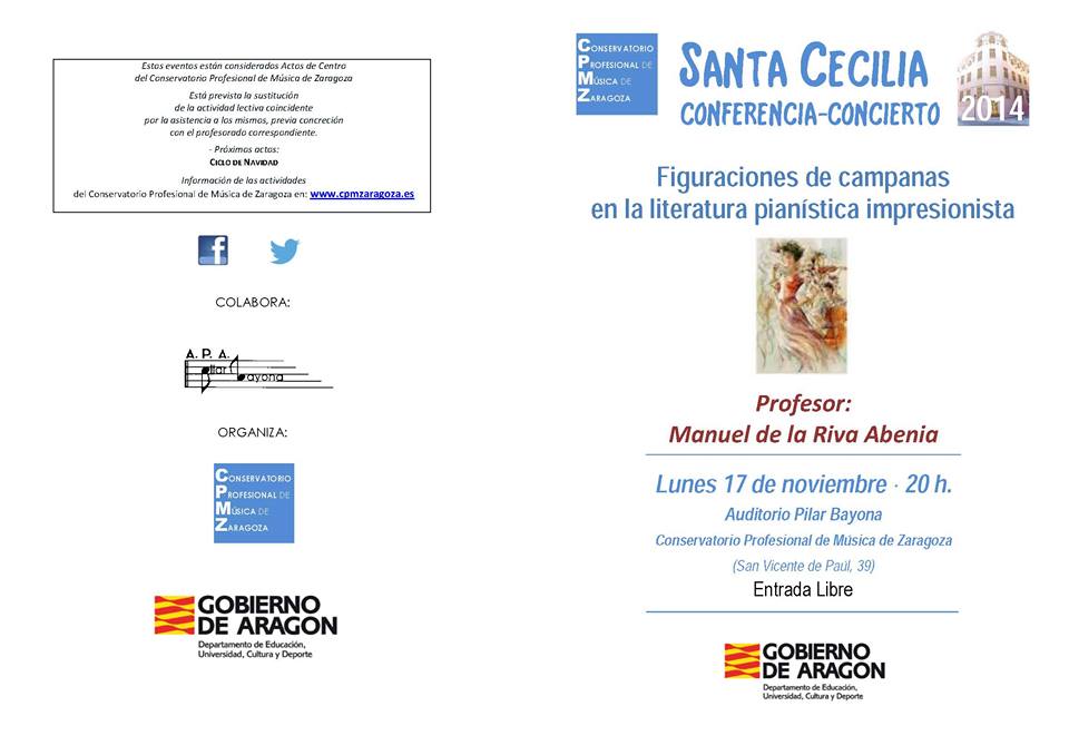 Amilter G. Tavares, Auditorio Pilar Bayona, C. Ph. E. Bach. Una vida. Una obra, Carnaval de los animales, Conservatorio Profesional de Música de Zaragoza, Elena Olmos, Manuel de la Riva, Orquesta, Pilar Montoya, Poesía y melodía infantil, Saint-Saens, Santa Cecilia, Santa Isabel de Portugal