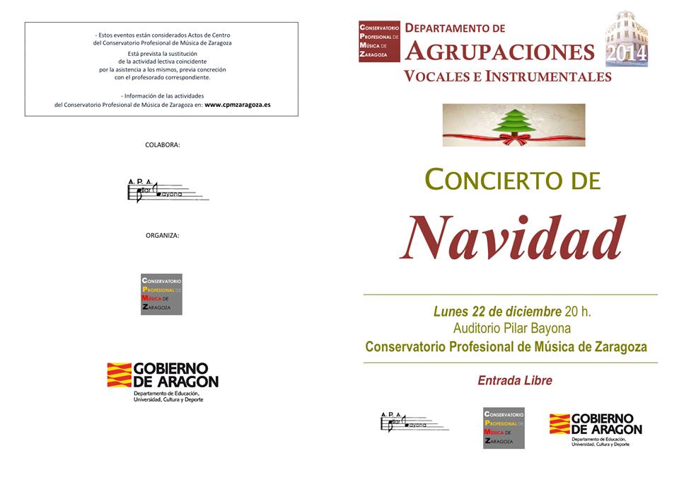 A continuación, a las 20:00, Concierto de Agrupaciones Vocales e Instrumentales también en el Auditorio «Pilar Bayona» del Conservatorio Profesional de Música de Zaragoza.