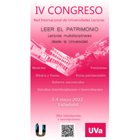 Los días 3 y 4 de mayo de 2022 tendrá lugar el IV Congreso Internacional de la Red Internacional de Universidades Lectoras en la Universidad de Valladolid. Se celebrará en formato presencial y virtual a la vez, es decir, el congreso se realizará en la Universidad de Valladolid pero se retransmitirá también por streaming y se habilitarán salas virtuales a través de la aplicación Zoom.